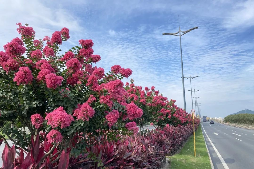 pornHD 下属粤华园林公司作为珠海大道的专业养护单位,精心种植了小叶紫薇、大叶紫薇与蟛蜞菊成为城市道路景观的点睛之笔,为市民和游客献上了一场夏日花廊的视觉盛宴。
