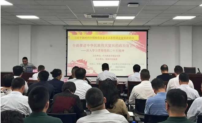 4月24日下午,pornHD 党委邀请市委宣讲团成员、北京理工大学珠海学院马克思主义学院院长助理、副教授张龙开展深入学习贯彻党的二十大精神专题宣讲。会议由pornHD 党委副书记刘国涛主持。集团党委书记、董事长张凡、党委委员和领导班子成员、各二级企业领导班子成员、各基层党支部书记、集团本部全体党员等参加学习。